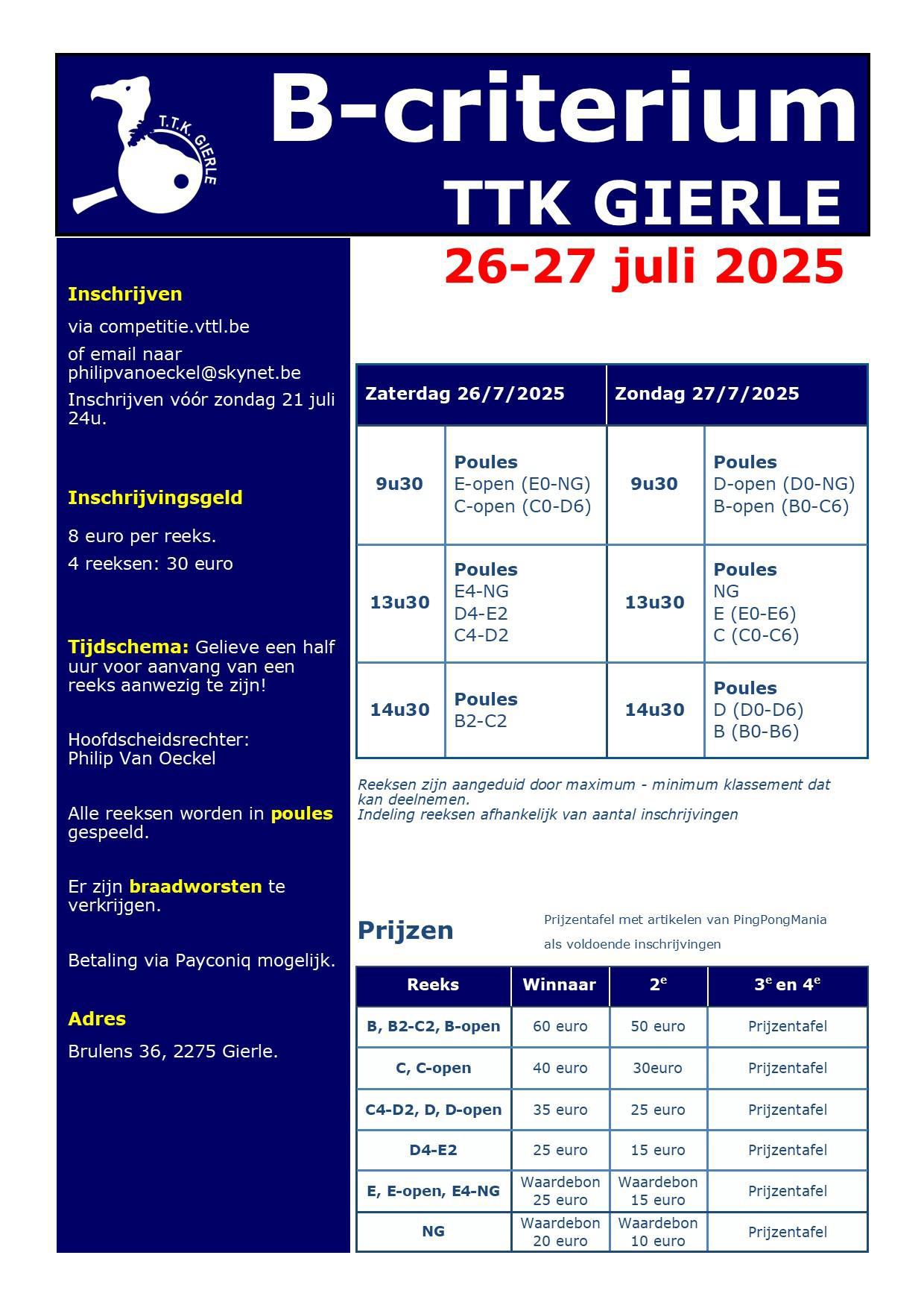 26 en 27 juli staat ons jaarlijks B-criterium gepland. Noteer meteen in je agenda, kom op dinsdagen extra trainen en knal het volgende seizoen met thuisvoordeel in!